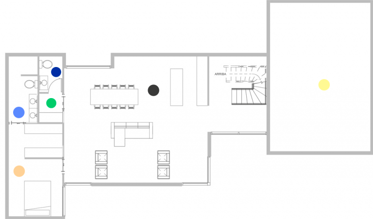 Planta baja distribuida alrededor del gran salón/comedor/cocina, protagonista principal de esta vivienda.