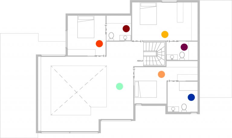 Planta segunda con el resto de dependencias, entre ellas tres dormitorios completos.