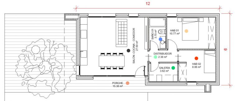 Las estancias se organizan alrededor del salón/cocina, separando de este modo las zonas de día y las privadas de noche: con dos dormitorios completos y un baño.